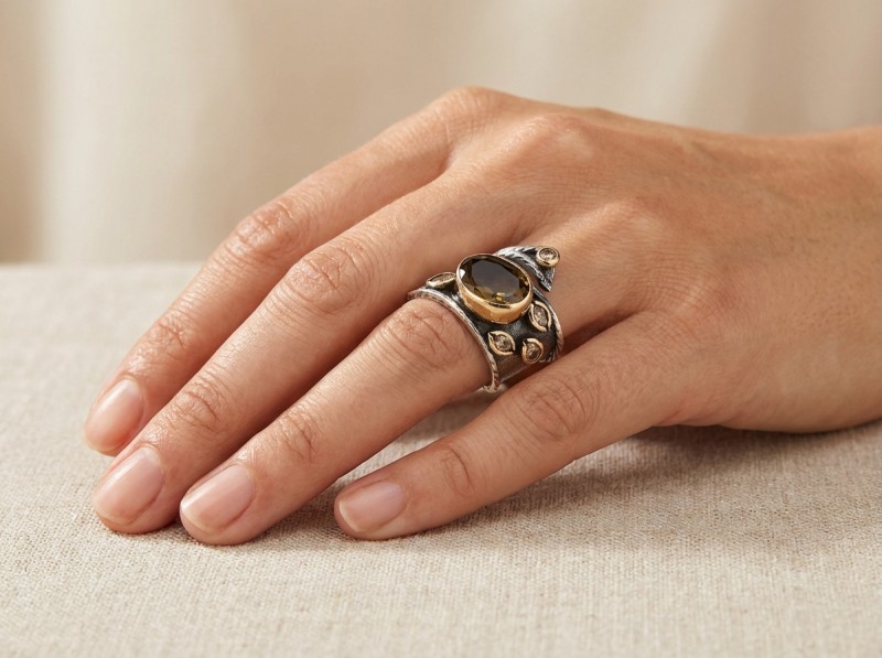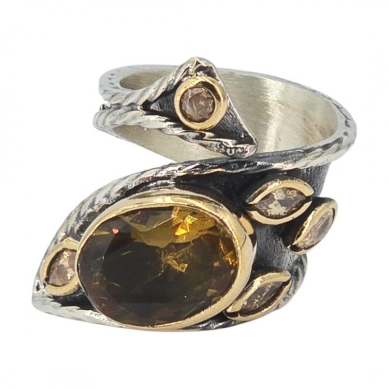 ΧΕΙΡΟΠΟΙΗΤΟ ΔΑΧΤΥΛΙΔΙ ΑΠΟ ΑΣΗΜΙ925 ΜΕ ΧΡΥΣΟΛΙΘΟ ΚΑΙ ΖΙΡΚΟΝ ΠΕΤΡΑ