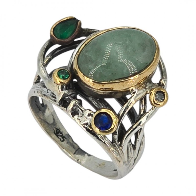 ΧΕΙΡΟΠΟΙΗΤΟ ΔΑΧΤΥΛΙΔΙ ΑΠΟ ΑΣΗΜΙ925 ΜΕ ΧΡΥΣΟΛΙΘΟ ΚΑΙ ΖΙΡΚΟΝ ΠΕΤΡΑ