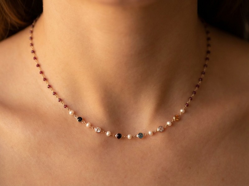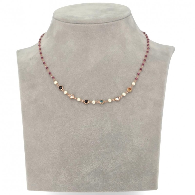 ΚΟΛΙΕ ΡΟΖΑΡΙΟ ΑΣΗΜΙ925 ΜΕ ΡΟΖ ΕΠΙΧΡΥΣΩΣΗ ΚΑΙ ΚΡΥΣΤΑΛΛΑ