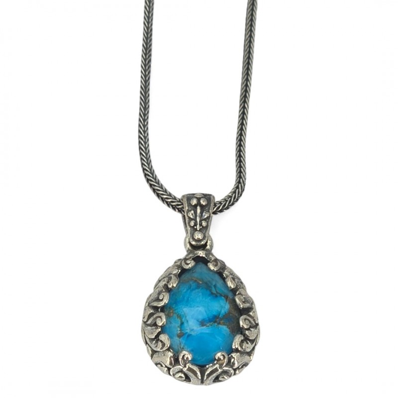 ΒΥΖΑΝΤΙΝΟ ΜΕΝΤΑΓΙΟΝ ΑΣΗΜΙ925 ΜΕ COPPER ΤΥΡΚΟΥΑΖ ΠΕΤΡΑ