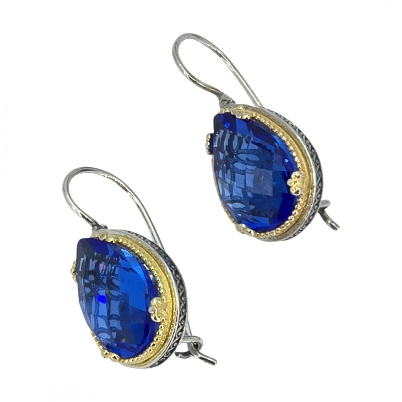 ΒΥΖΑΝΤΙΝΑ ΣΚΟΥΛΑΡΙΚΙΑ ΑΣΗΜΙ925 ΜΕ ΕΠΙΧΡΥΣΩΣΗ Κ18 ΚΑΙ ΜΠΛΕ ΖΙΡΚΟΝ ΠΕΤΡΑ