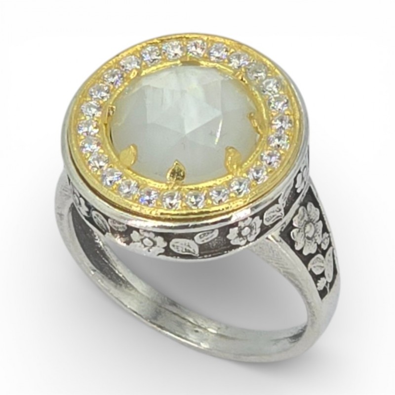 ΒΥΖΑΝΤΙΝΟ ΔΑΧΤΥΛΙΔΙ ΑΣΗΜΙ925 ΜΕ ΕΠΙΧΡΥΣΩΣΗ Κ18 ΦΙΛΝΤΙΣΙ ΚΑΙ ΖΙΡΚΟΝ ΠΕΤΡΕΣ
