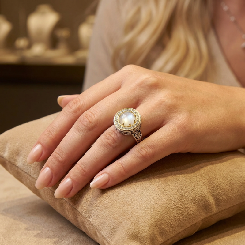 ΒΥΖΑΝΤΙΝΟ ΔΑΧΤΥΛΙΔΙ ΑΣΗΜΙ925 ΜΕ ΕΠΙΧΡΥΣΩΣΗ Κ18 ΚΑΙ ΑΠΑΤΙΤΗ ΠΕΤΡΑ