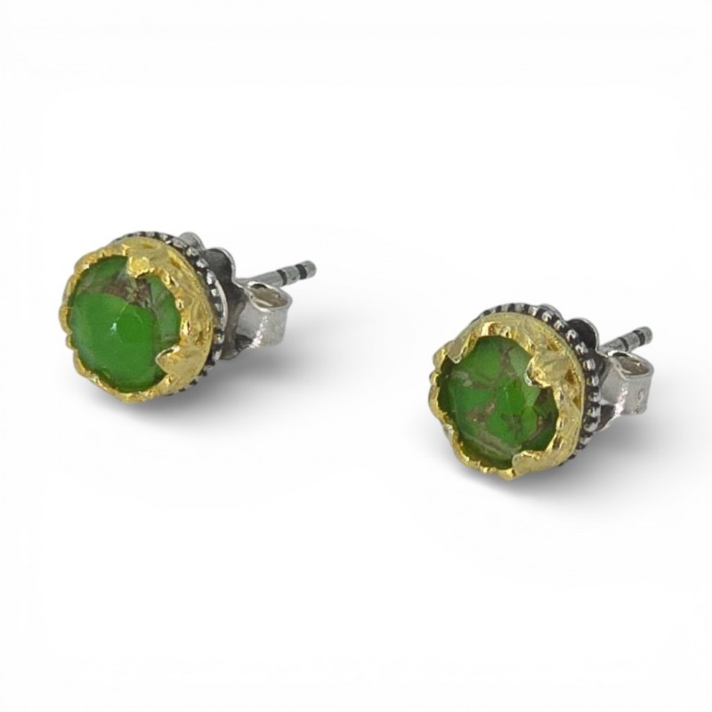 ΚΑΡΦΩΤΑ ΒΥΖΑΝΤΙΝΑ ΣΚΟΥΛΑΡΙΚΙΑ ΑΣΗΜΙ925 ΜΕ ΕΠΙΧΡΥΣΩΣΗ Κ18 ΚΑΙ ΠΡΑΣΙΝΟ ΤΥΡΚΟΥΑΖ ΠΕΤΡΕΣ