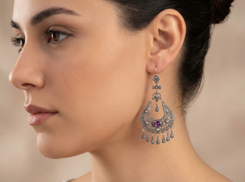 ΧΕΙΡΟΠΟΙΗΤΑ ΦΙΛΙΓΚΡΑΝ ΣΚΟΥΛΑΡΙΚΙΑ ΑΠΟ ΑΣΗΜΙ925 ΚΑΙ ΑΜΕΘΥΣΤΟ ΠΕΤΡΑ