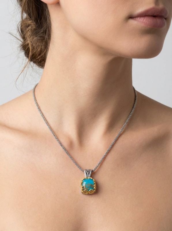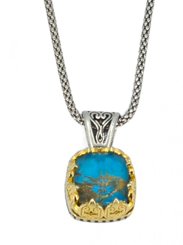 ΒΥΖΑΝΤΙΝΟ ΜΕΝΤΑΓΙΟΝ ΑΣΗΜΙ925 ΜΕ ΕΠΙΧΡΥΣΩΣΗ Κ18 ΚΑΙ COPPER ΤΥΡΚΟΥΑΖ ΠΕΤΡΑ