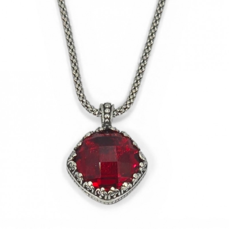 ΑΝΤΙΚΕ ΜΕΝΤΑΓΙΟΝ AΠΟ ΑΣΗΜΙ925 ΚΑΙ ΚΟΚΚΙΝΟ ΖΙΡΚΟΝ ΠΕΤΡΑ