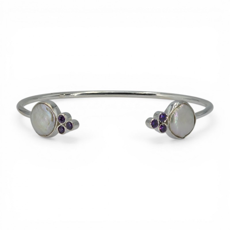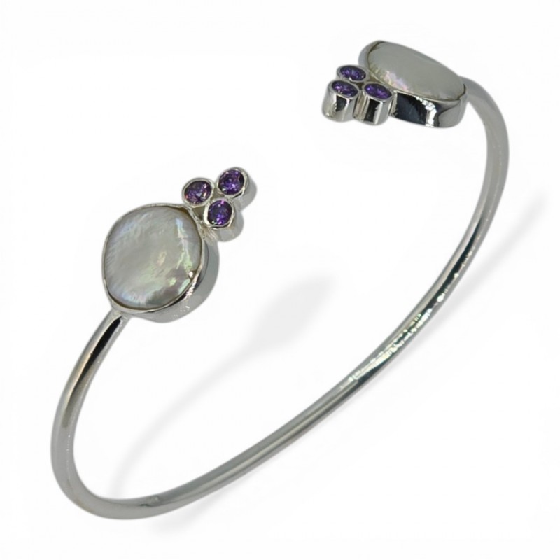 ΧΕΙΡΟΠΟΙΗΤΟ ΒΡΑΧΙΟΛΙ ΑΣΗΜΙ925 ΜΕ ΜΑΡΓΑΡΙΤΑΡΙ ΚΑΙ ΖΙΡΚΟΝ ΠΕΤΡΕΣ