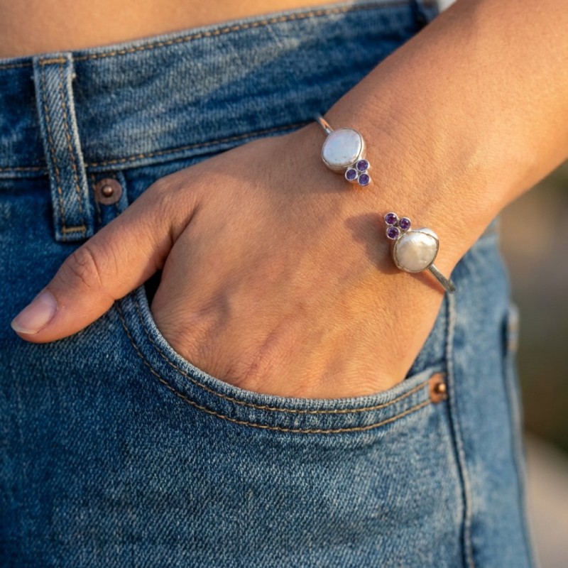 ΧΕΙΡΟΠΟΙΗΤΟ ΒΡΑΧΙΟΛΙ ΑΣΗΜΙ925 ΜΕ ΜΑΡΓΑΡΙΤΑΡΙ