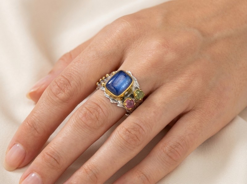 ΧΕΙΡΟΠΟΙΗΤΟ ΔΑΧΤΥΛΙΔΙ ΑΠΟ ΑΣΗΜΙ925 ΚΑΙ ΤΟΥΡΜΑΛΙΝΗ ΠΕΤΡΕΣ