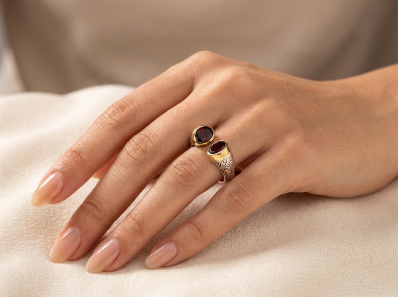 ΑΝΤΙΚΕ ΔΑΧΤΥΛΙΔΙ ΑΣΗΜΙ925 ΜΕ ΓΡΑΝΑΔΑ ΠΕΤΡΕΣ