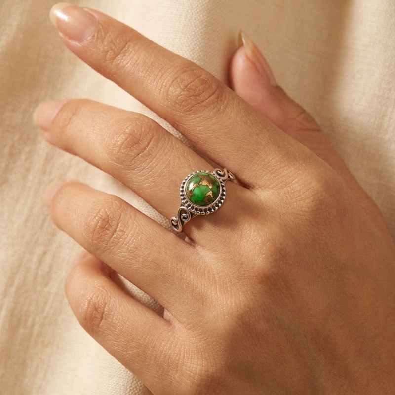 ΑΝΤΙΚΕ ΔΑΧΤΥΛΙΔΙ ΑΣΗΜΙ925 ΜΕ ΠΡΑΣΙΝΟ ΤΥΡΚΟΥΑΖ ΠΕΤΡΑ