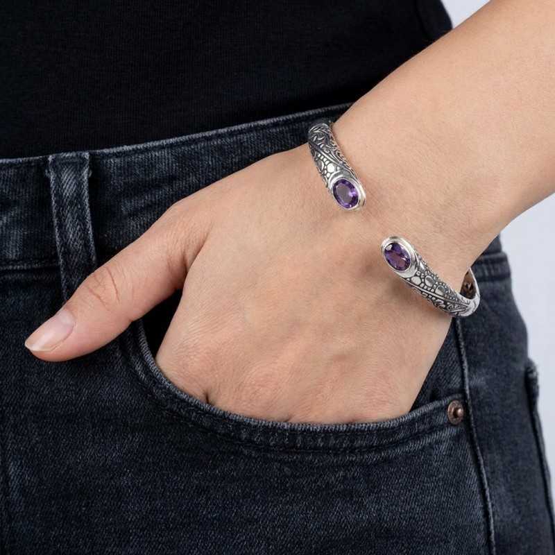 ΧΕΙΡΟΠΟΙΗΤΟ ΣΚΑΛΙΣΤΟ ΒΡΑΧΙΟΛΙ ΧΕΙΡΟΠΕΔΑ ΑΠΟ ΑΣΗΜΙ925 ΚΑΙ ΑΜΕΘΥΣΤΟ ΠΕΤΡΑ