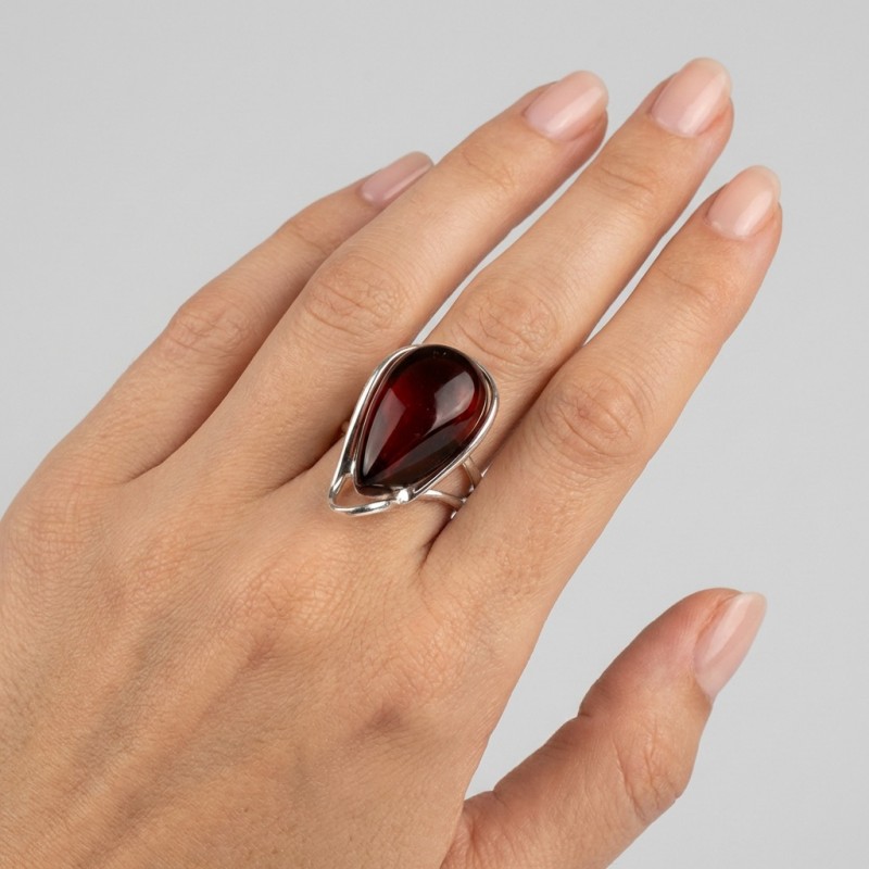 ΧΕΙΡΟΠΟΙΗΤΟ ΔΑΧΤΥΛΙΔΙ ΑΠΟ ΑΣΗΜΙ925 ΜΕ ΚΟΚΚΙΝΟ ΚΕΧΡΙΜΠΑΡΙ