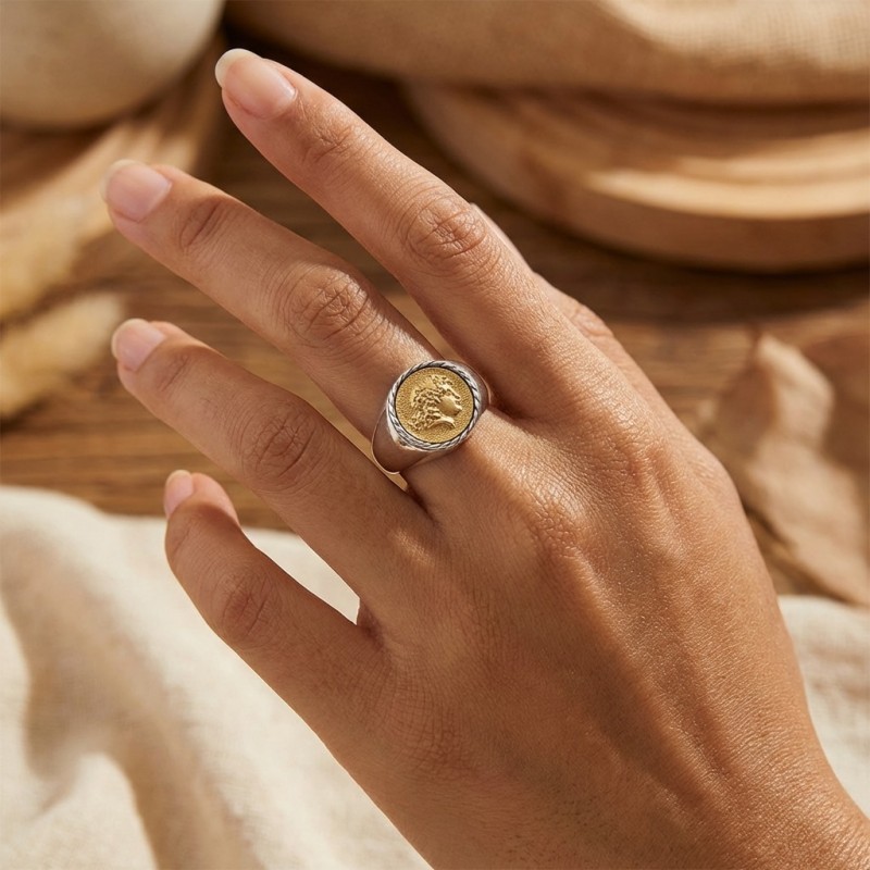 ΔΑΧΤΥΛΙΔΙ ΜΕ ΑΡΧΑΙΟΕΛΛΗΝΙΚΗ ΚΕΦΑΛΗ ΑΠΟ ΑΣΗΜΙ925 ΚΑΙ ΕΠΙΧΡΥΣΩΣΗ Κ 18