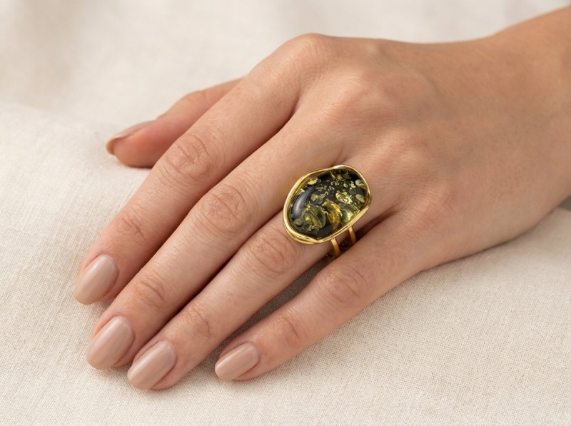 ΧΕΙΡΟΠΟΙΗΤΟ ΔΑΧΤΥΛΙΔΙ ΑΠΟ ΑΣΗΜΙ925 ΕΠΙΧΡΥΣΩΣΗ Κ18 ΚΑΙ ΠΡΑΣΙΝΟ ΚΕΧΡΙΜΠΑΡΙ