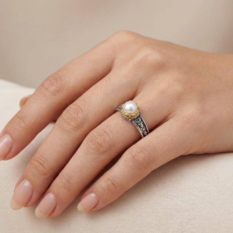 ΒΥΖΑΝΤΙΝΟ ΣΚΑΛΙΣΤΟ ΔΑΧΤΥΛΙΔΙ ΑΣΗΜΙ925 ΜΕ ΕΠΙΧΡΥΣΩΣΗ Κ18 ΚΑΙ ΜΑΡΓΑΡΙΤΑΡΙ
