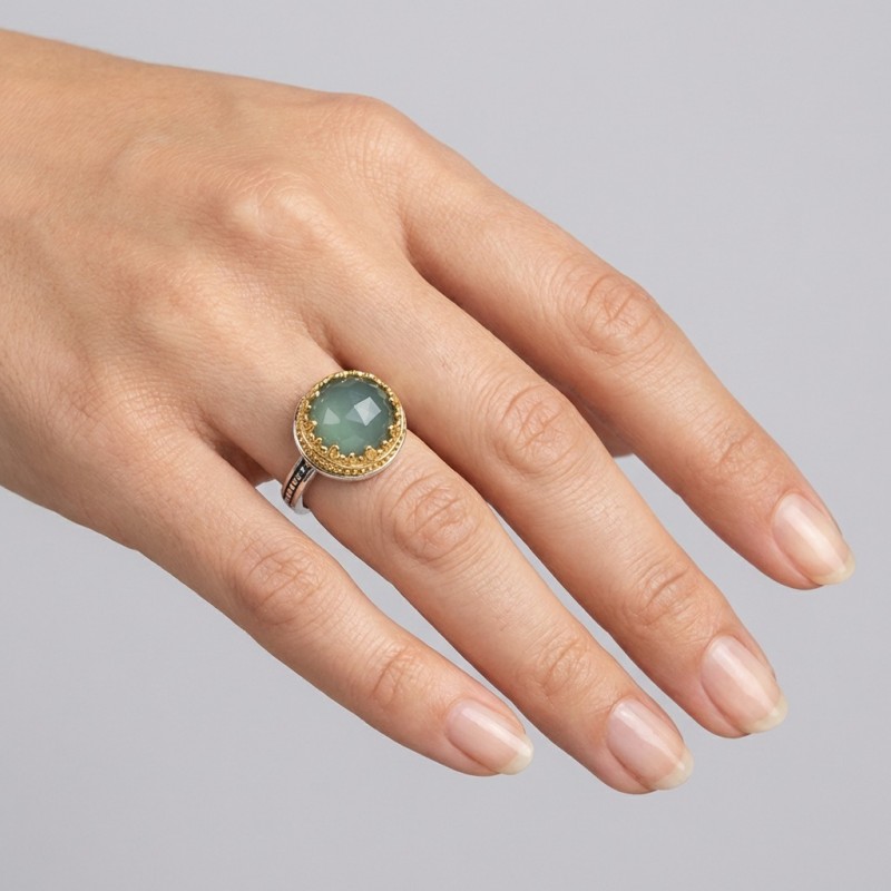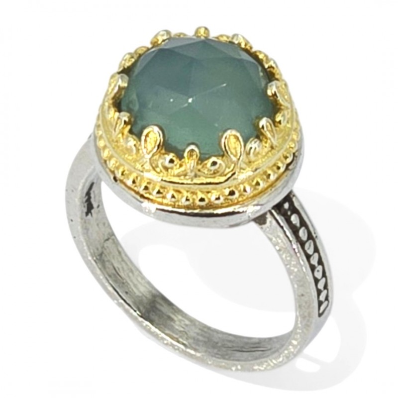 ΒΥΖΑΝΤΙΝΟ ΔΑΧΤΥΛΙΔΙ ΑΣΗΜΙ 925 ΜΕ ΕΠΙΧΡΥΣΩΣΗ Κ18 ΚΑΙ ΑΜΑΖΟΝΙΤΗ ΠΕΤΡΑ