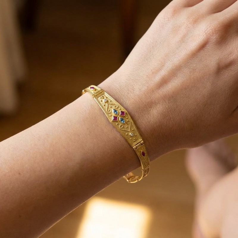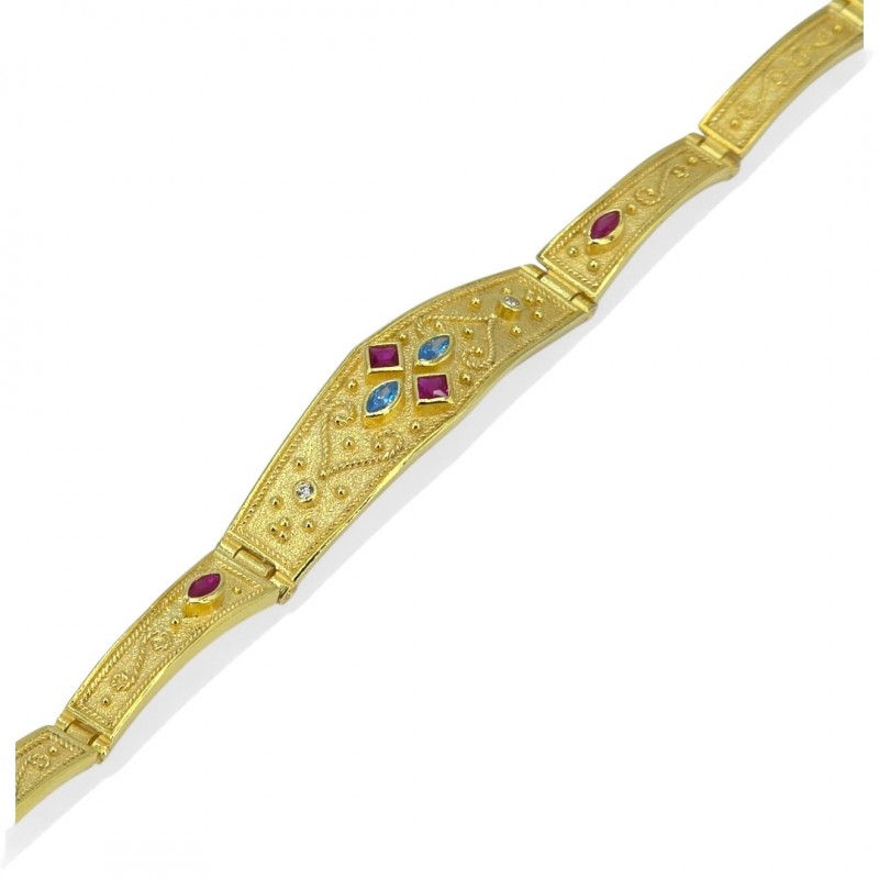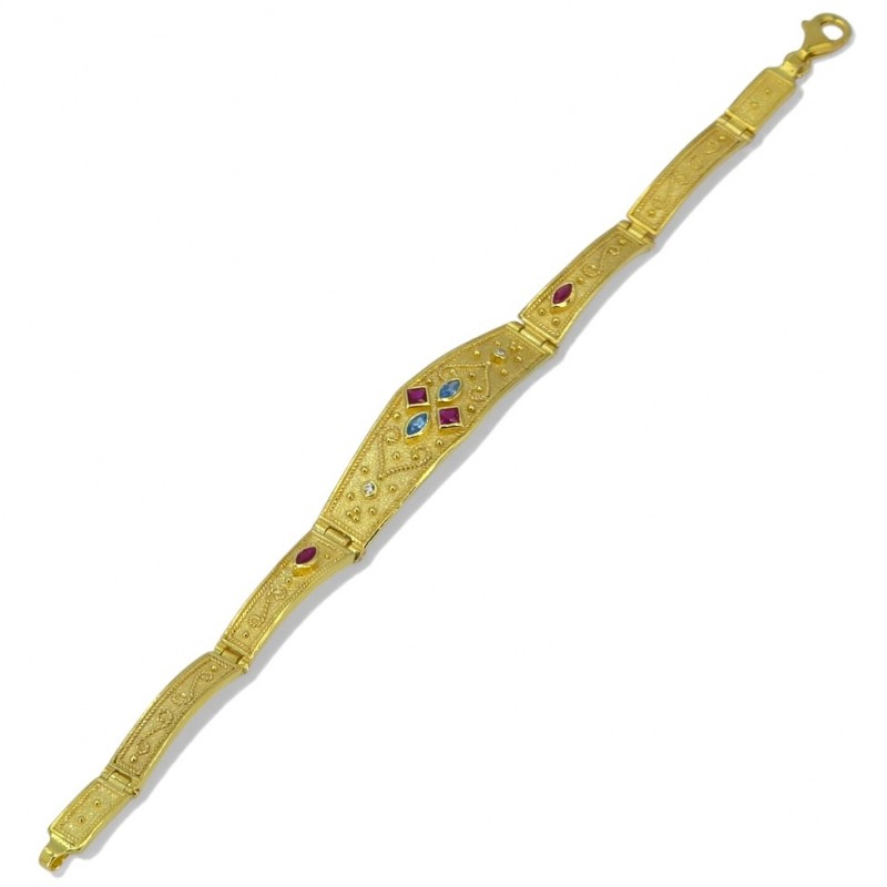 ΒΥΖΑΝΤΙΝΟ ΧΕΙΡΟΠΟΙΗΤΟ ΒΡΑΧΙΟΛΙ ΑΣΗΜΙ925 ΕΠΙΧΡΥΣΩΣΗ Κ18 ΚΑΙ ΖΙΡΚΟΝ ΠΕΤΡΕΣ