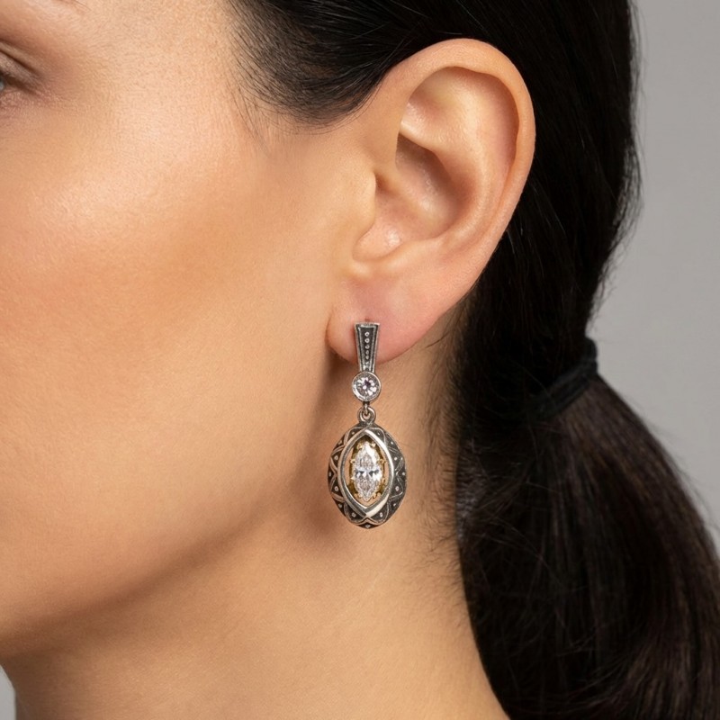 ANTIKE ΣΚΟΥΛΑΡΙΚΙΑ ΑΣΗΜΙ 925 ΕΠΙΧΡΥΣΩΣΗ Κ18 KAI ΖΙΡΚΟΝ ΠΕΤΡΑ