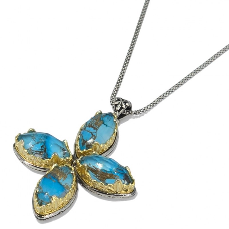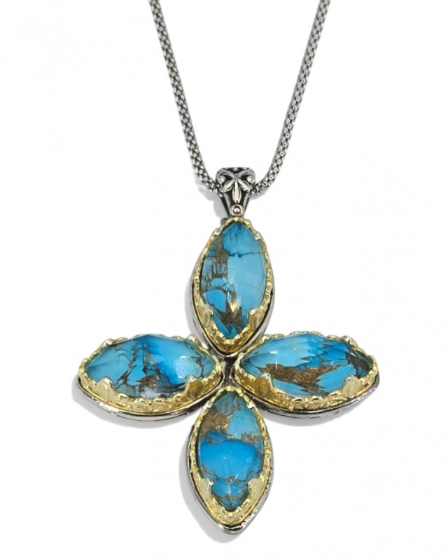 ΒΥΖΑΝΤΙΝΟΣ ΧΕΙΡΟΠΟΙΗΤΟΣ ΣΤΑΥΡΟΣ ΑΣΗΜΙ925 ΜΕ COOPER ΤΥΡΚΟΥΑΖ ΠΕΤΡΕΣ