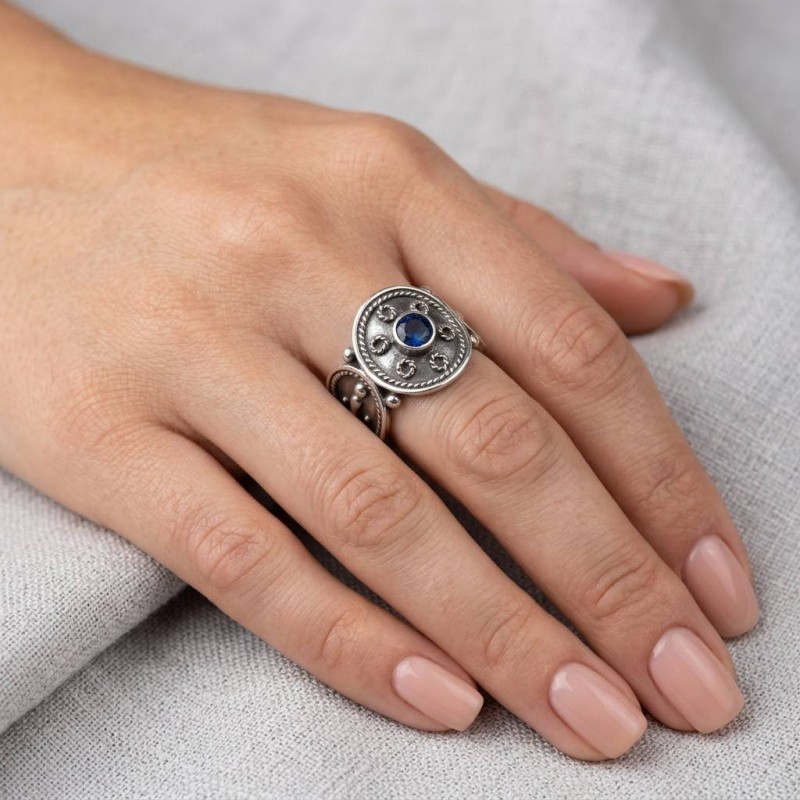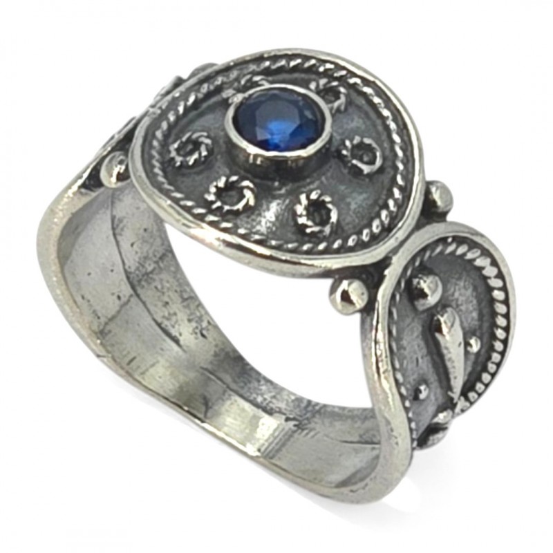 ΒΥΖΑΝΤΙΝΟ ΣΚΑΛΙΣΤΟ ΔΑΧΤΥΛΙΔΙ ΑΣΗΜΙ925 ΜΕ ΜΠΛΕ ΖΙΡΚΟΝ ΠΕΤΡΑ