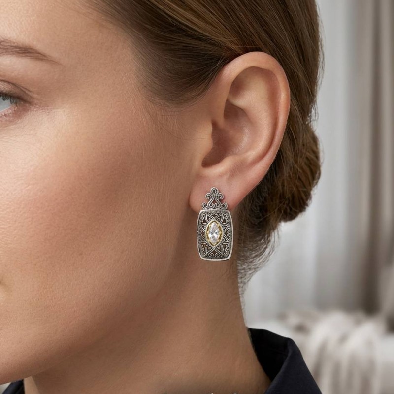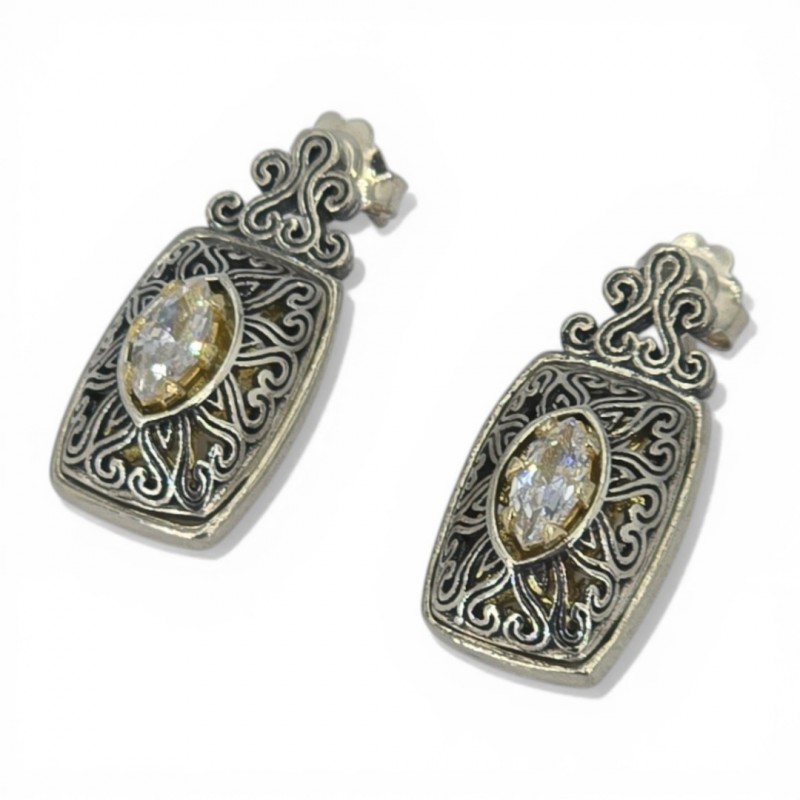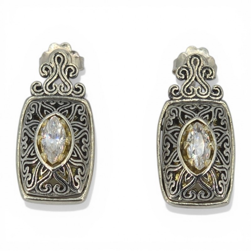 ΣΚΑΛΙΣΤΑ ΚΑΡΦΩΤΑ ΒΥΖΑΝΤΙΝΑ ΣΚΟΥΛΑΡΙΚΙΑ ΑΣΗΜΙ925 ΜΕ ΖΙΡΚΟΝ ΠΕΤΡΑ
