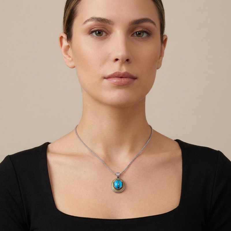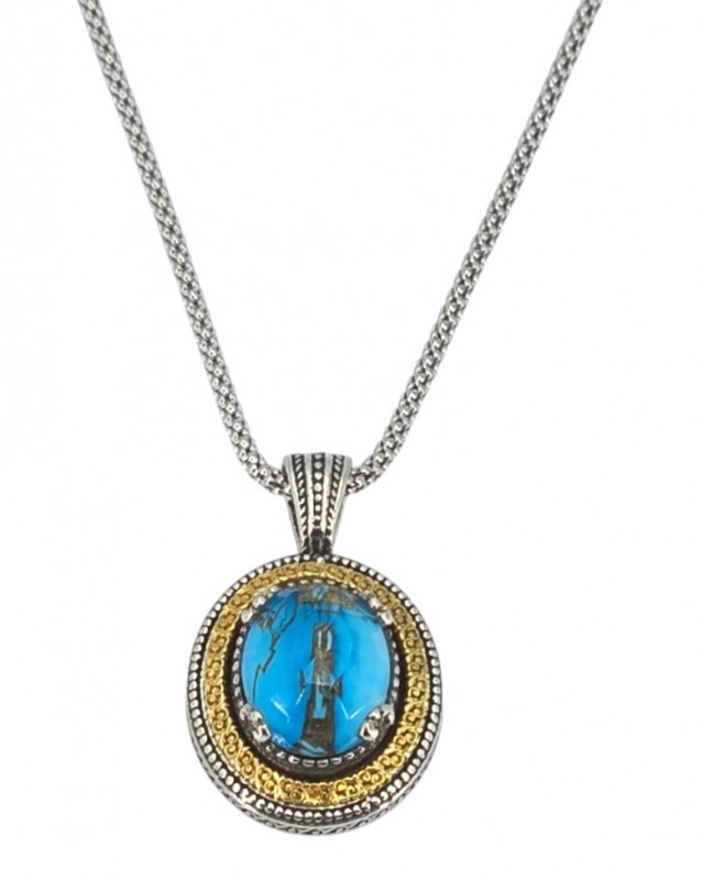 ΒΥΖΑΝΤΙΝΟ ΜΕΝΤΑΓΙΟΝ ΑΣΗΜΙ925 ΕΠΙΧΡΥΣΩΣΗ Κ18 ΚΑΙ COPPER ΤΥΡΚΟΥΑΖ ΠΕΤΡΑ