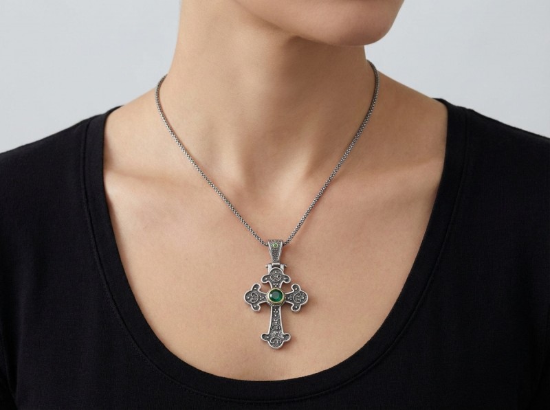 ΧΕΙΡΟΠΟΙΗΤΟΣ ΒΥΖΑΝΤΙΝΟΣ ΣΤΑΥΡΟΣ ΑΠΟ ΑΣΗΜΙ925 ΚΑΙ ΖΙΡΚΟΝ ΠΕΤΡΕΣ