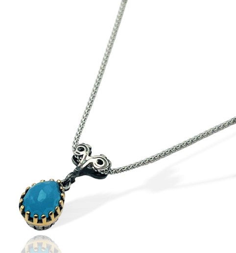 ΒΥΖΑΝΤΙΝΟ ΜΕΝΤΑΓΙΟΝ ΑΣΗΜΙ925 ΜΕ COPPER ΤΥΡΚΟΥΑΖ ΠΕΤΡΑ