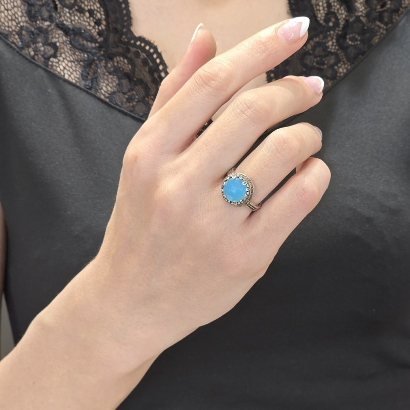 ΒΥΖΑΝΤΙΝΟ ΣΚΑΛΙΣΤΟ ΔΑΧΤΥΛΙΔΙ ΑΠΟ ΑΣΗΜΙ925 ΜΕ ΤΥΡΚΟΥΑΖ ΠΕΤΡΑ