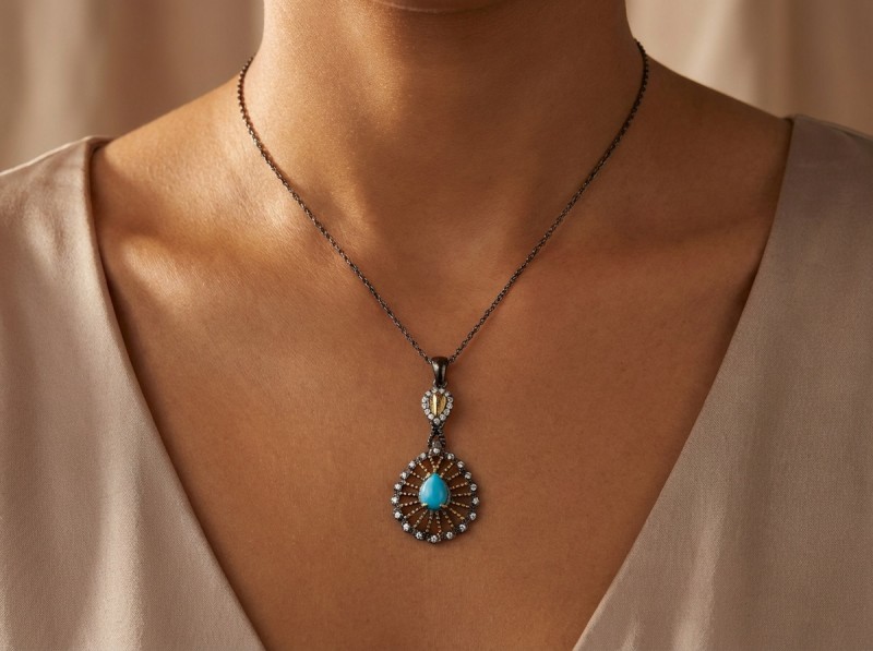 ΑΝΤΙΚΕ ΜΕΝΤΑΓΙΟΝ ΑΣΗΜΙ925 ΜΕ ΕΠΙΧΡΥΣΩΣΗ ΚΑΙ ΤΥΡΚΟΥΑΖ ΠΕΤΡΑ