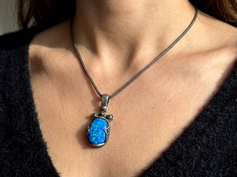 ΜΕΝΤΑΓΙΟΝ ΑΝΤΙΚΕ ΑΣΗΜΙ925 ΜΕ ΜΠΛΕ ΟΠΑΛ