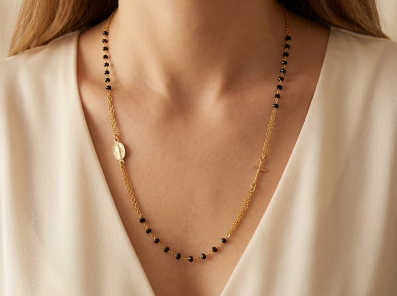 ΚΟΛΙΕ ΡΟΖΑΡΙΟ ΑΣΗΜΙ925 ΜΕ ΕΠΙΧΡΥΣΩΣΗ ΚΑΙ ΟΝΥΧΑ ΠΕΤΡΕΣ
