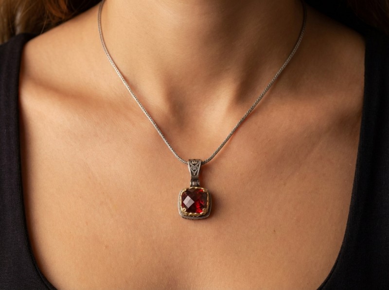 ΜΕΝΤΑΓΙΟΝ ΒΥΖΑΝΤΙΝΟ ΑΣΗΜΙ925 ΜΕ ΕΠΙΧΡΥΣΩΣΗ Κ18 ΓΡΑΝΑΔΑ ΠΕΤΡΑ