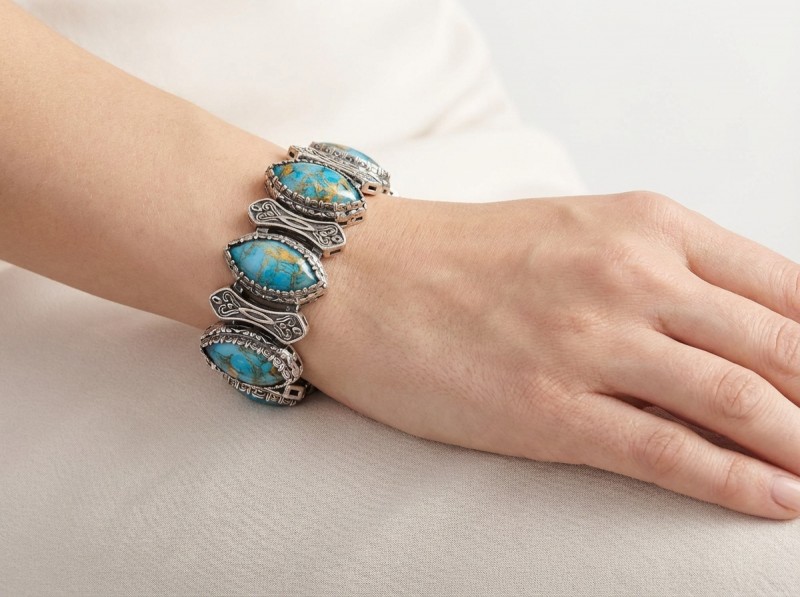 ΧΕΙΡΟΠΟΙΗΤΟ ΒΥΖΑΝΤΙΝΟ ΒΡΑΧΙΟΛΙ ΑΣΗΜΙ925 ΜΕ COPPER ΤΥΡΚΟΥΑΖ ΠΕΤΡΕΣ ΚΑΙ ΧΑΛΑΖΙΑ