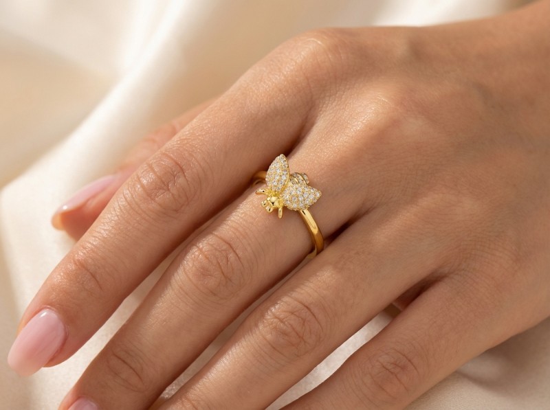 ΔΑΧΤΥΛΙΔΙ ΜΕΛΙΣΣΑ ΑΠΟ ΑΣΗΜΙ925 ΜΕ ΕΠΙΧΡΥΣΩΣΗ ΚΑΙ ΖΙΡΚΟΝ ΠΕΤΡΕΣ