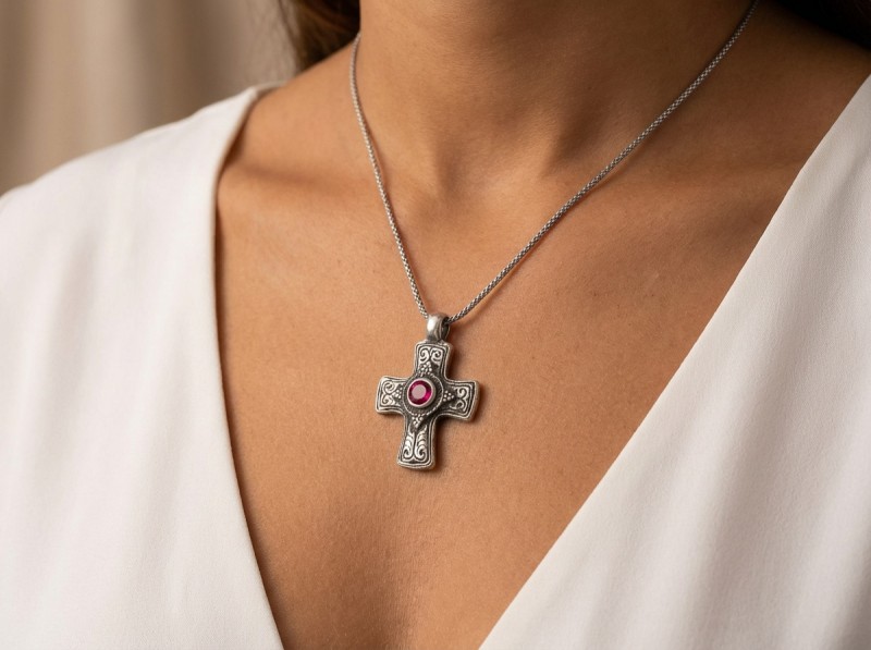 ΧΕΙΡΟΠΟΙΗΤΟΣ ΒΥΖΑΝΤΙΝΟΣ ΣΤΑΥΡΟΣ ΑΠΟ ΑΣΗΜΙ925 ΜΕ ΓΡΑΝΑΔΑ ΠΕΤΡΑ