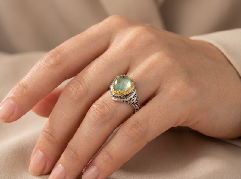 ΑΝΤΙΚΕ ΔΑΧΤΥΛΙΔΙ ΑΣΗΜΙ925 ΜΕ ΣΟΥΛΤΑΝΙΤΗ ΠΕΤΡΑ