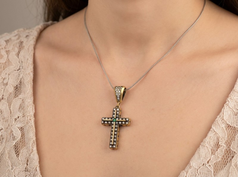 ΧΕΙΡΟΠΟΙΗΤΟΣ ΣΚΑΛΙΣΤΟΣ ΣΤΑΥΡΟΣ ΑΠΟ ΑΣΗΜΙ925 ΜΕ ΖΙΡΚΟΝ ΠΕΤΡΕΣ