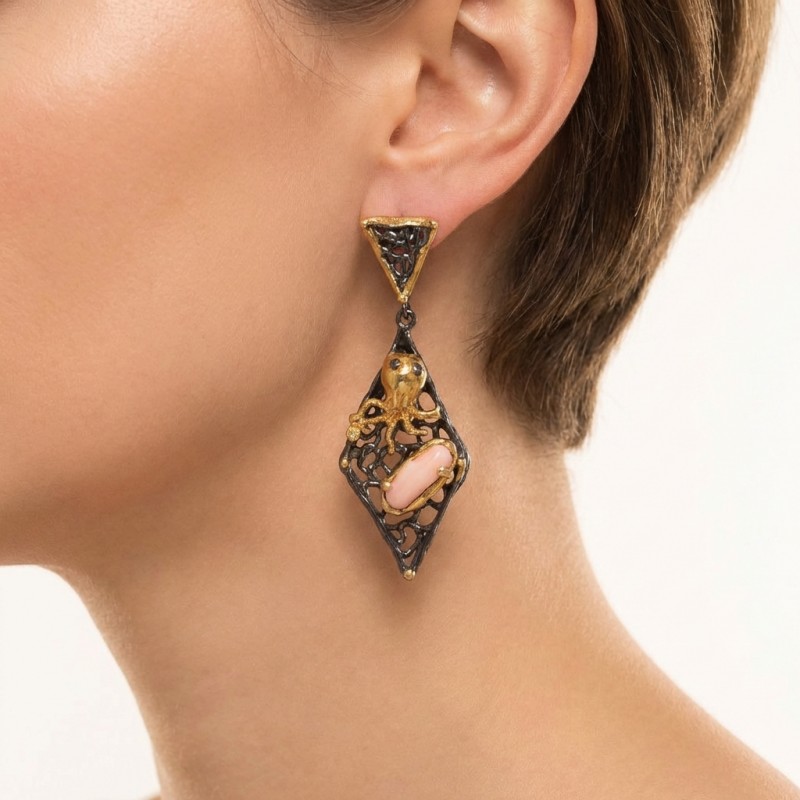 ΑΝΤΙΚΕ ΚΑΡΦΩΤΑ ΣΚΟΥΛΑΡΙΚΙΑ ΧΤΑΠΟΔΙ ΑΣΗΜΙ925 ΜΕ ΡΟΖ QUARTZ ΚΑΙ ΕΠΙΧΡΥΣΩΣΗ Κ18