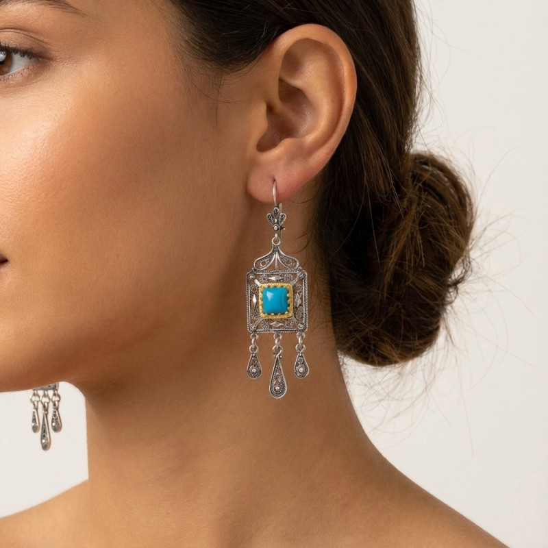 ΦΙΛΙΓΚΡΑΝ ΣΚΟΥΛΑΡΙΚΙΑ ΑΠΟ ΑΣΗΜΙ925 ΕΠΙΧΡΥΣΩΣΗ Κ18 K TYRKOYAZ ΠΕΤΡΑ