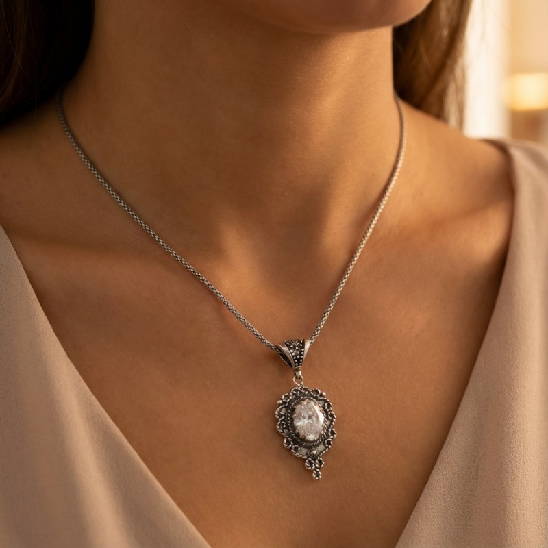 ΑΝΤΙΚΕ ΜΕΝΤΑΓΙΟΝ ΑΣΗΜΙ925 ΜΕ ΖΙΡΚΟΝ ΠΕΤΡA