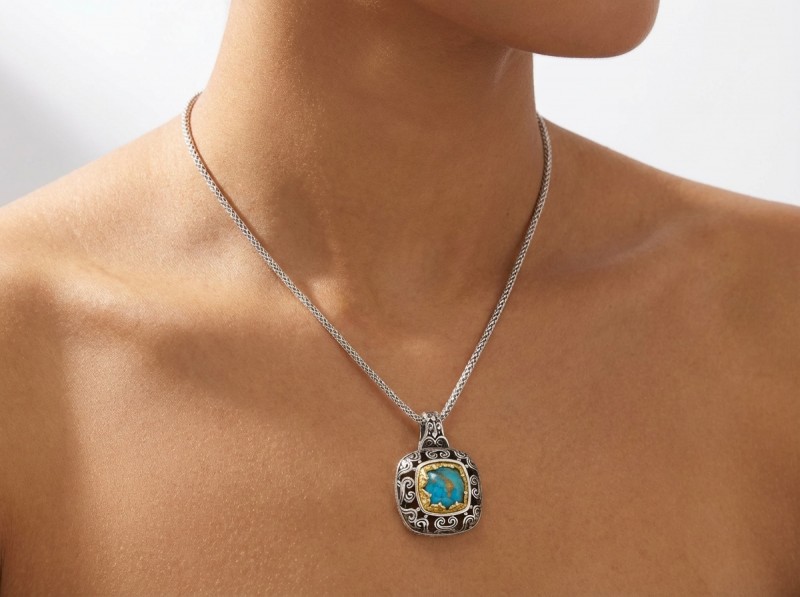 ΜΕΝΤΑΓΙΟΝ ΒΥΖΑΝΤΙΝΟ ΑΣΗΜΙ925 ΜΕ ΕΠΙΧΡΥΣΩΣΗ Κ18 KAI COPPER ΤΥΡΚΟΥΑΖ ΠΕΤΡΑ