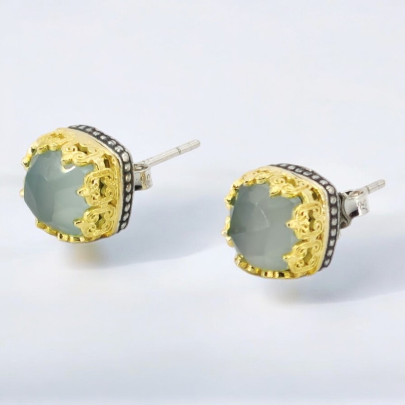 ΒΥΖΑΝΤΙΝΑ ΚΑΡΦΩΤΑ ΣΚΟΥΛΑΡΙΚΙΑ AΠΟ ΑΣΗΜΙ 925 ΕΠΙΧΡΥΣΩΣΗ Κ18 Κ ΑΜΑΖΟΝΙΤΗ ΠΕΤΡΑ
