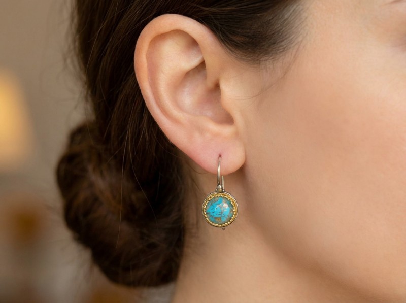 ΔΙΧΡΩΜΑ ΣΚΑΛΙΣΤΑ ΣΚΟΥΛΑΡΙΚΙΑ ΑΣΗΜΙ925 ΕΠΙΧΡΥΣΩΣΗ Κ18 ΚΑΙ ΤΥΡΚΟΥΑΖ ΠΕΤΡΑ